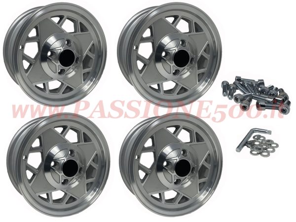 *Satz 4 Leichtmetallfelgen Typ “Millemiglia” Silver Diamond Ausführung – 4,5” x 12 – Fiat und Autobianchi 500 Giardiniera