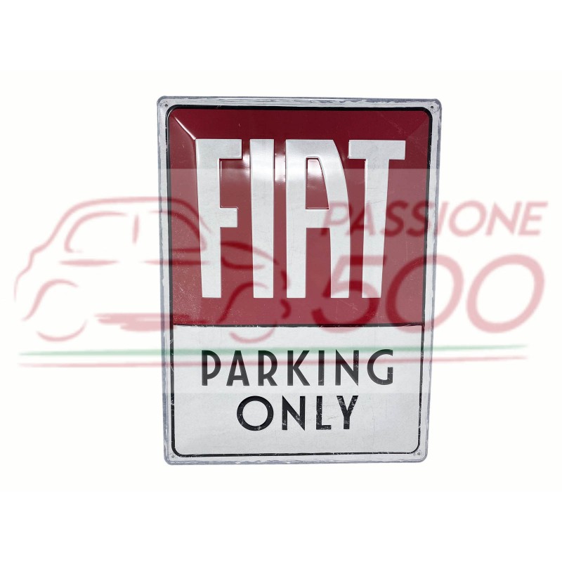 INSEGNA IN METALLO Dim. 40x30 cm. FIAT PARKING ONLY - IN RILIEVO