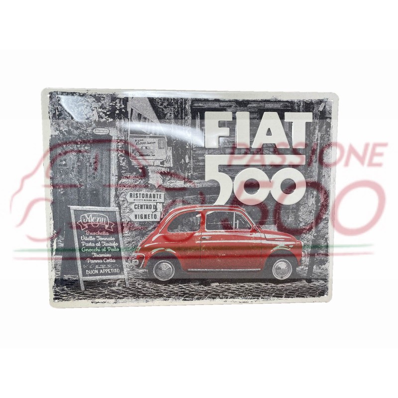 INSEGNA IN METALLO Dim. 40x30 cm. FIAT 500 ROSSA - IN RILIEVO